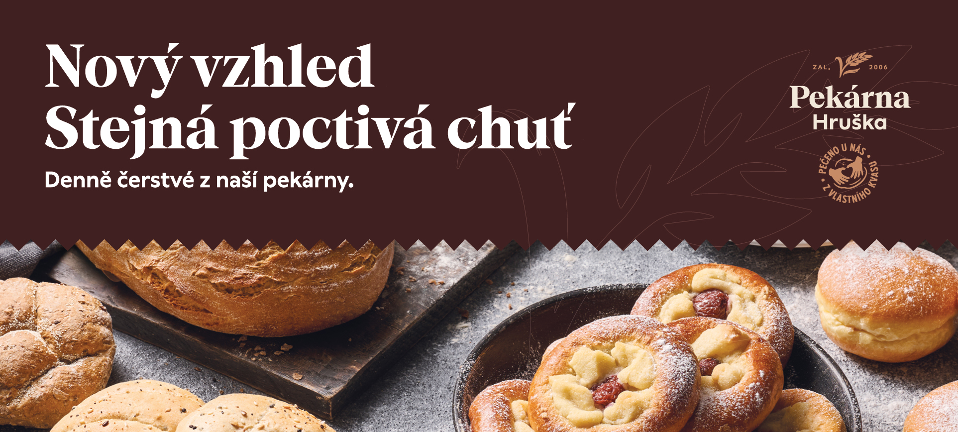 Pekárna Hruška – nový vzhled, stejná poctivá chuť. Pekárna Hruška přichází s novým logem a modernizovanými obaly.